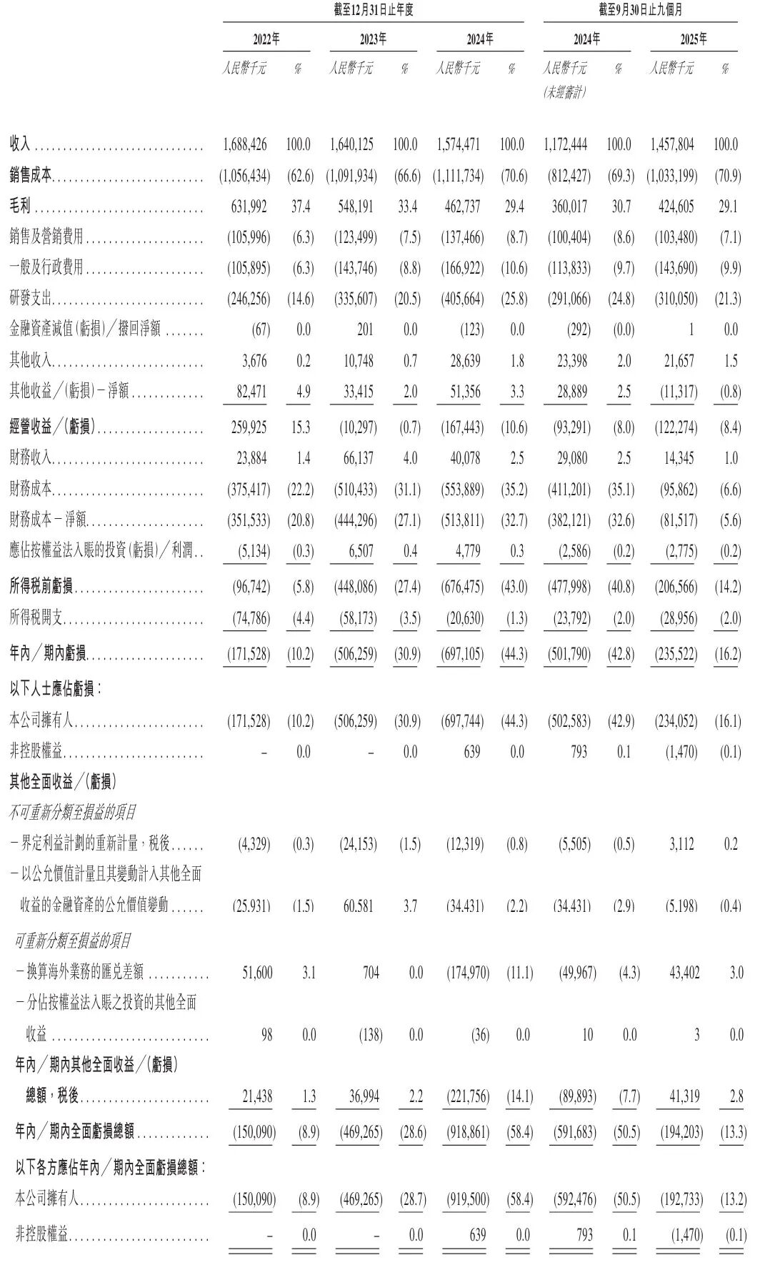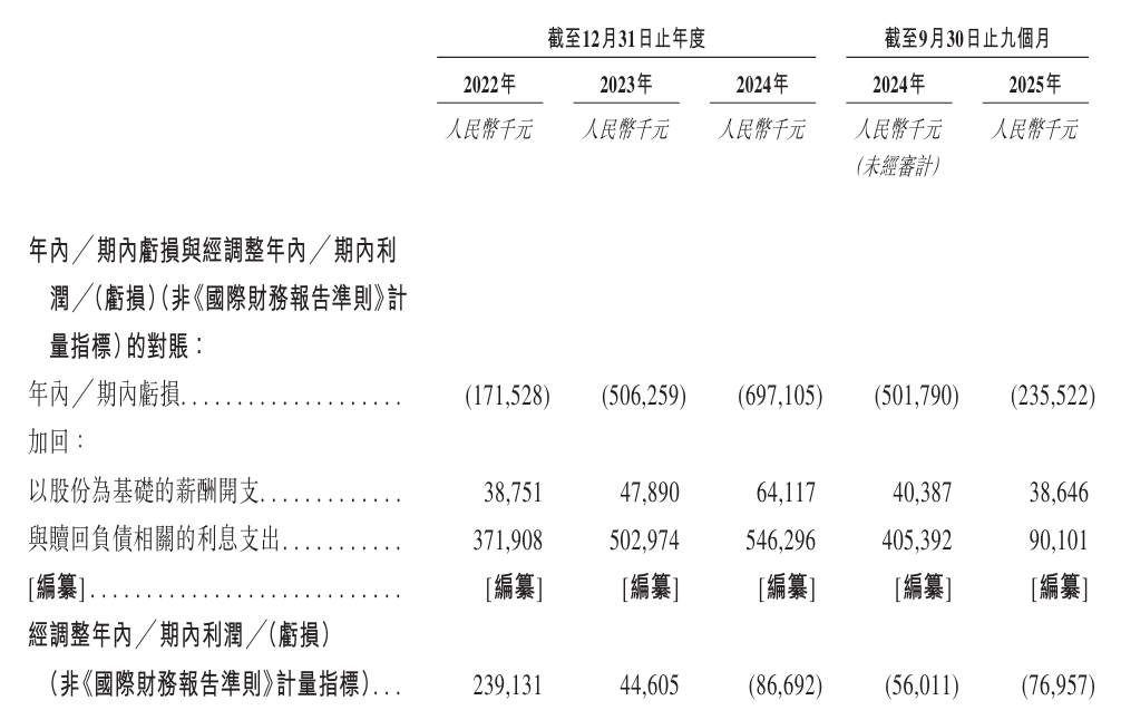 芯迈半导体2022年、2023年、2024年经调整净利分别为2.39亿、4461万、-8669万元;2025年前9个月经调整净亏损为7696万元。
