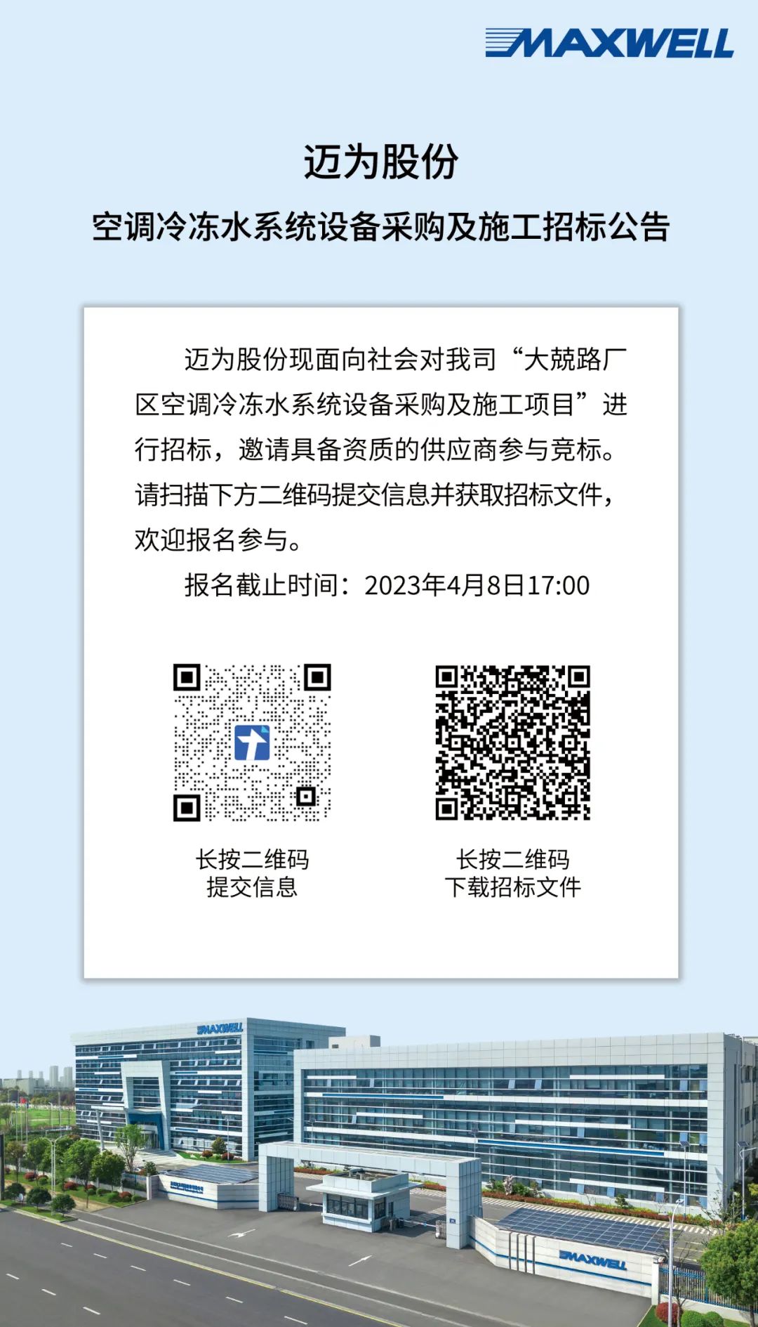 【招标公告】迈为股份空调冷冻水系统设备采购及施工招标