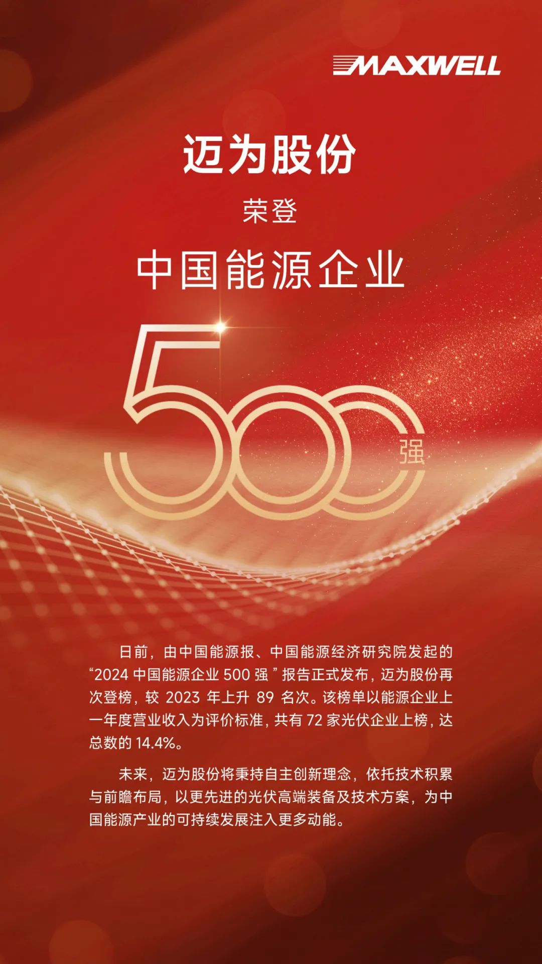 迈为股份再登中国能源企业500强榜单