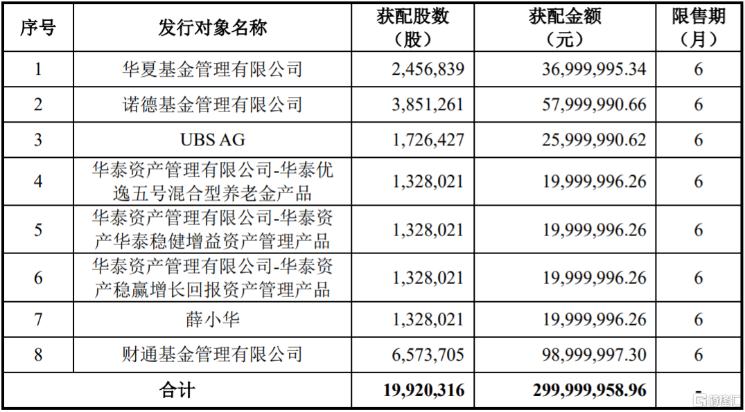 隆利科技(300752.SZ)披露向特定对象发行股票发行情况报告书,确定此次发行价格15.06元/股,发行股数1992.0316万股,募集资金总额约3亿元。此次发行对象最终确定为8名,此次发行配售结果如下: