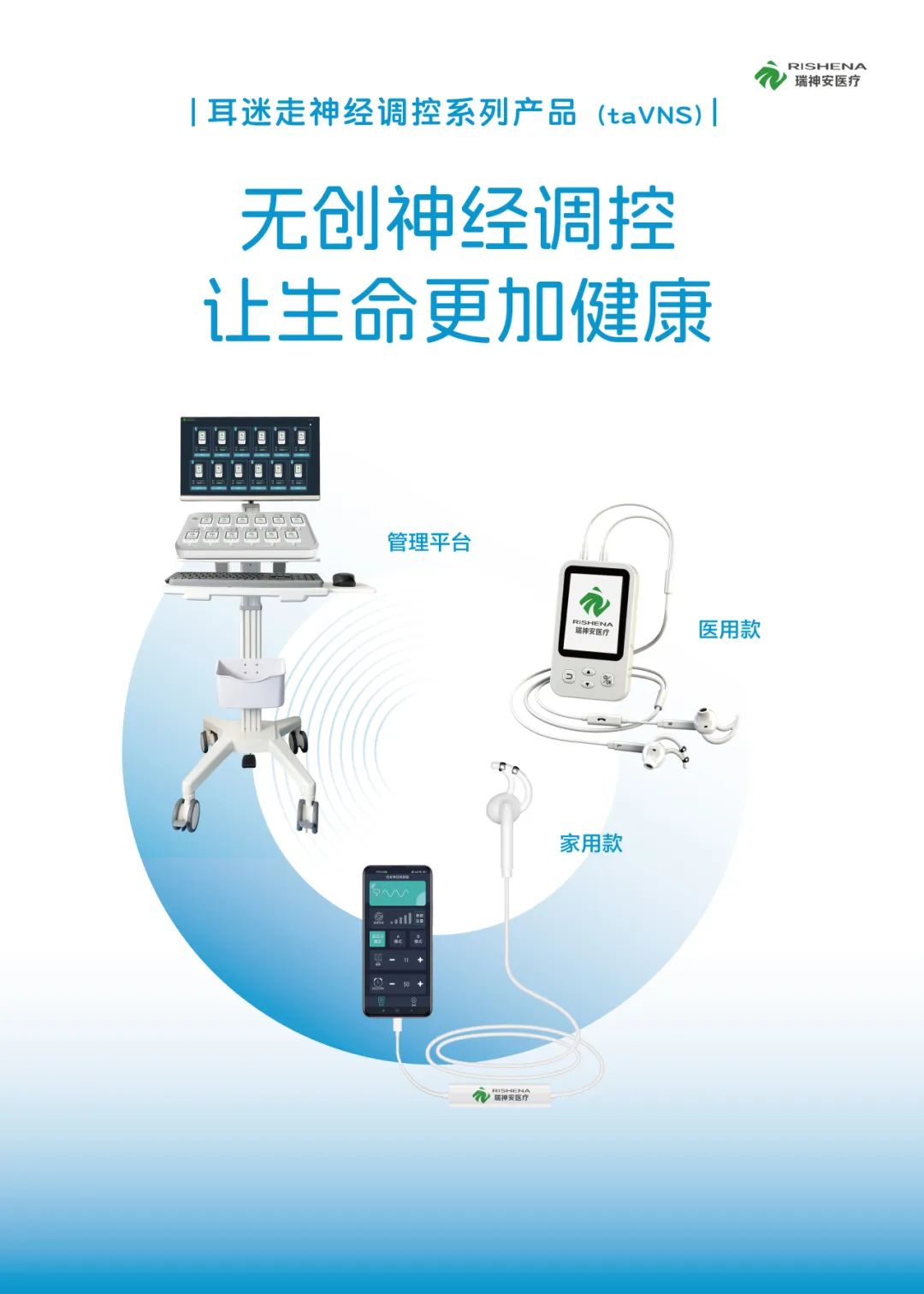 以无创神经调控为切点,爱朋医疗参股并合作销售的常州瑞神安耳迷走神经调控系列产品——耳甲迷走神经刺激器(tVNS501)通过精准刺激耳甲处迷走神经,可显著增强蓝斑和孤束核的激活程度,有效调节大脑活动并优化脑功能环境。产品设计分为家用型与医用型两大类别,既适用于失眠、焦虑等状态的日常管理,又能辅助治疗慢性疼痛、癫痫及卒中后康复等临床病症,实现了从日常健康管理到专业医疗场景的全覆盖。