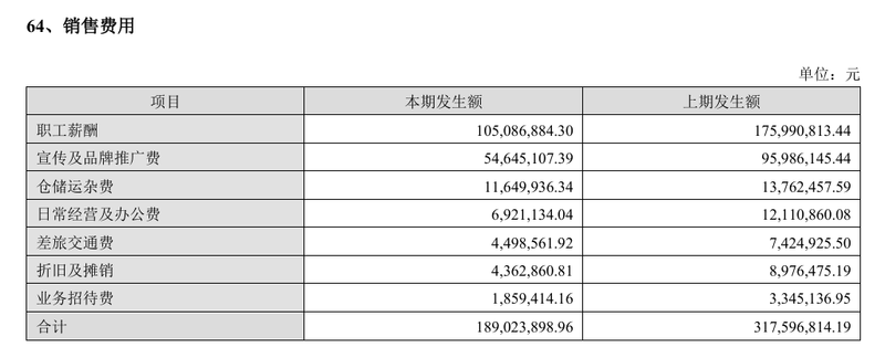 今年上半年,华致酒行的销售费用大幅下滑,主要系销售人员数量减少随之职工薪酬费用同比下降。记者注意到,除了职工薪酬大幅减少,华致酒行的宣传及品牌推广费也显著下滑。