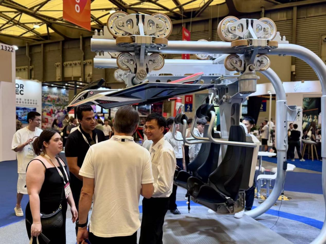 除了大型悬挂式过山车,金马游乐在本次展会上还展示了机甲系列、VR 系列、摩天轮系列等特色原创设备。这些设备适用场景多维,客群覆盖面广,投资回报高,吸引了众多客商驻足参观。金马游乐的营销团队热情地与新老朋友交流,分享公司的发展动态、创新理念以及最新成果。国际客商们对金马游乐的发展前景充满信心,并友好地达成了多项合作意向。