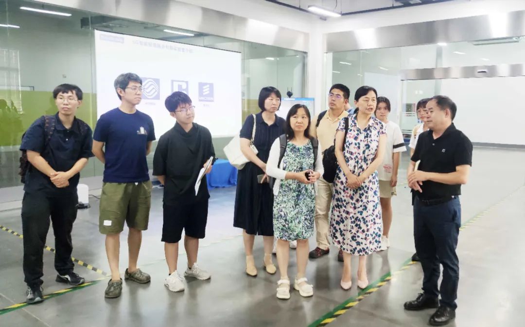 在罗博特科副总裁李伟彬的陪同下,调研团一行分别参观了5G智能制造联合创新实验室和生产车间。罗博特科软件事业部技术总监张学强通过5G实验室里展示的不同应用场景,介绍了5G与工业制造领域物联网的紧密关系,以及帮助工厂快速搭建工业物联场景,实现生产集中调度和快速迭代的意义。调研团一行饶有兴趣地和技术总监张学强探讨了在当代技术快速发展背景下,5G在工业控制中的广阔应用前景及为产业升级带来的机遇和挑战。