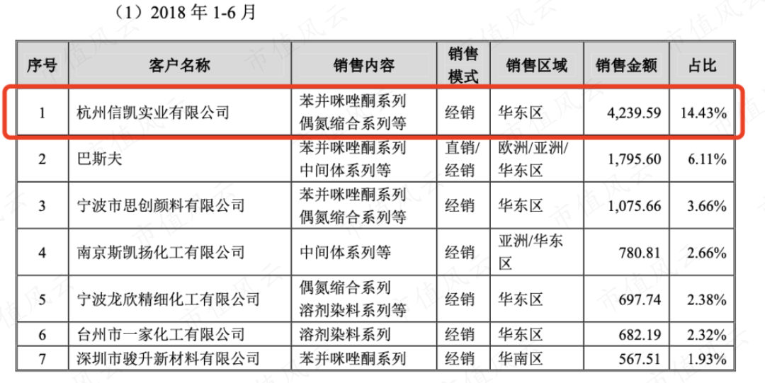 公司大客户名单中,杭州信凯实业有限公司从2015到2018年上半年连续霸榜4年,最高时对其销售占比达23.2%。