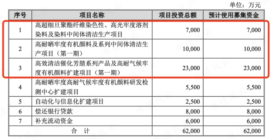 2019年公司的总产能在7000吨左右,首发上市时公司募资6.2亿,其中4亿投向扩建产能,新增年产3200吨有机颜料、7400吨中间体和300吨溶剂染料的产能。