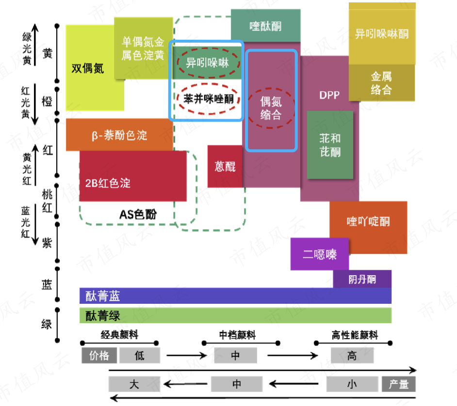 第一梯队巴斯夫、科莱恩和大日本油墨化学工业株式会社(DIC)占据市场上较大份额和高端市场;