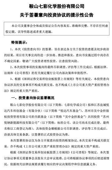 ▲七彩化学公告截图