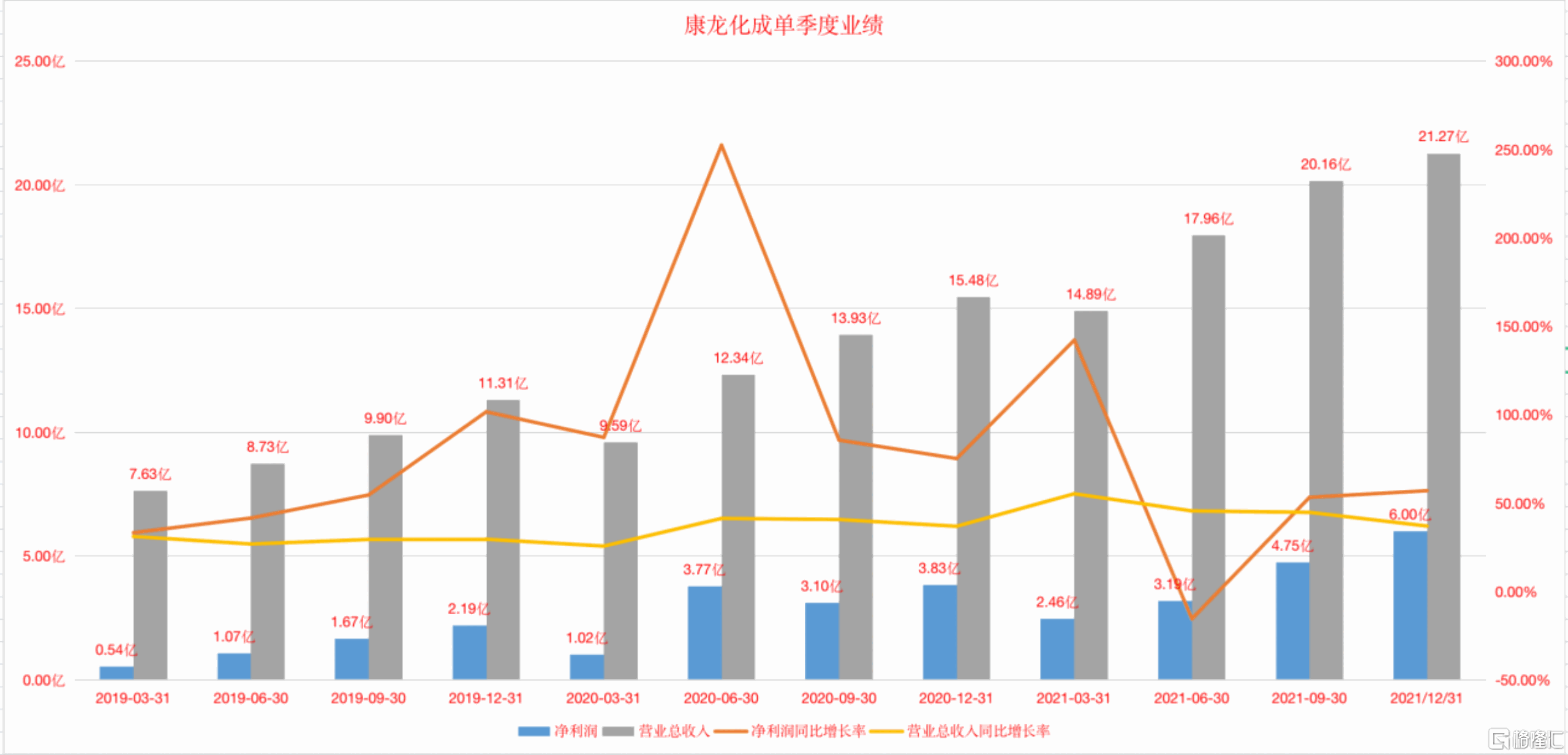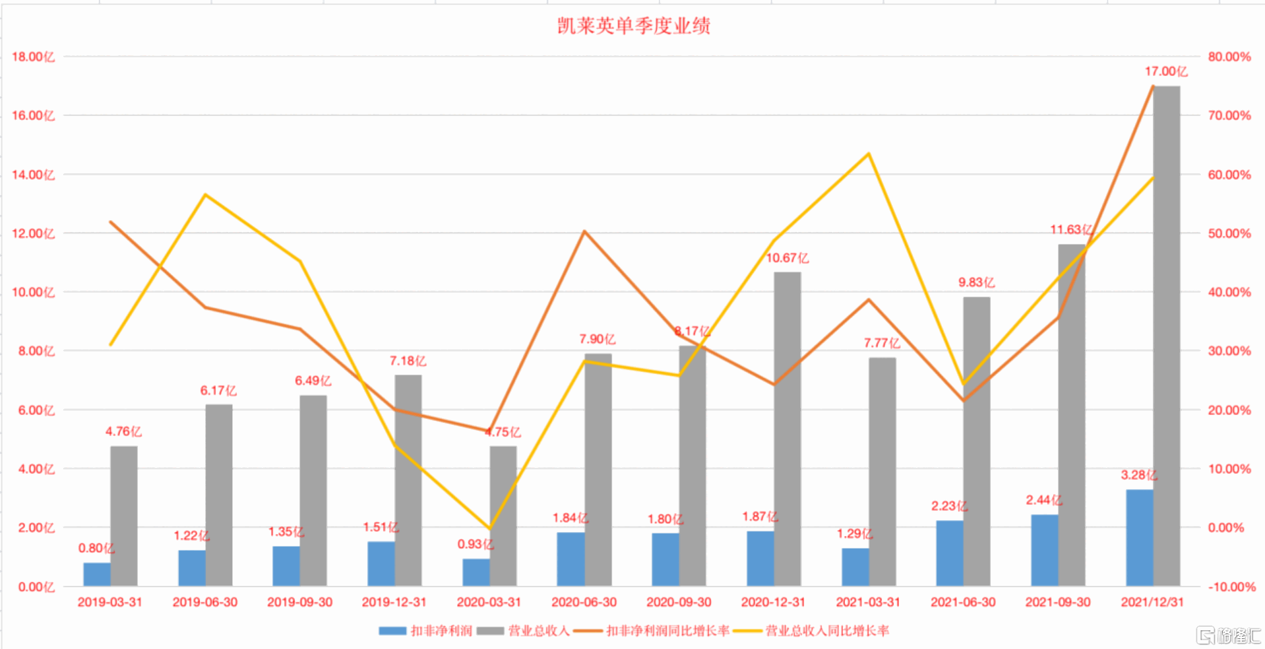 分拆来看,21年Q4单季度公司营收实现32%-42%增长(中位增速37%);归母净利润实现42%-72%增长(中位增速57%);扣非归母净利润实现80%-121%增长(中位增速100%);经调整归母净利润实现14%-50%增长(中位增速32%)。