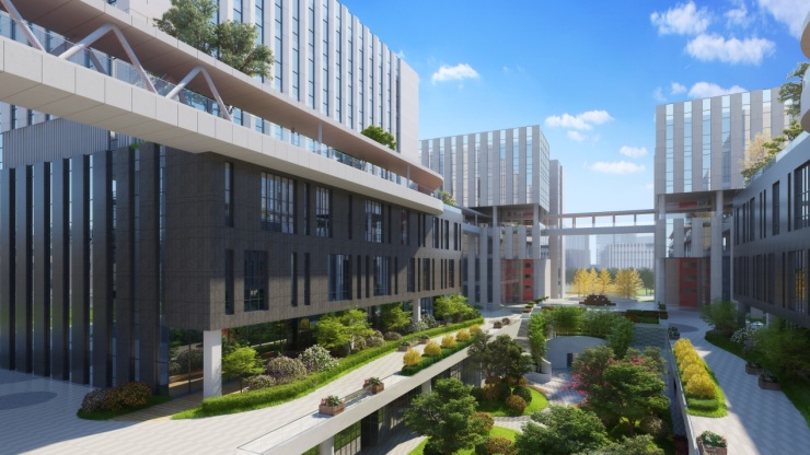 项目秉承“生态、智慧、绿色、人文”的设计理念,打造“屋顶花园、空中绿廊、街边绿地、下沉广场”四重园林景观,将建筑融于自然,将园区环境和工作生活有机结合,构建成一座“外观新颖、景观独特、内涵丰富、特色鲜明”的细胞科学产业公园,为员工带来愉悦的工作和生活体验。