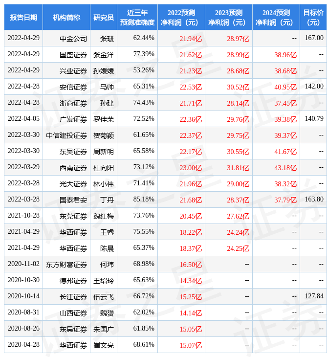 证券之星数据中心根据近三年发布的研报数据计算,国泰君安(601211)丁丹研究员团队对该股研究较为深入,近三年预测准确度均值高达85.18%,其预测2022年度归属净利润为盈利21.68亿,根据现价换算的预测PE为40.9。