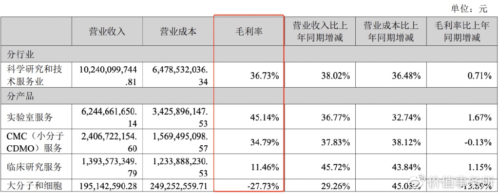 我们看下图,康龙的几大业务构成,除了在全球位列第三的实验室业务毛利比较稳定和正常(45%左右),其余的不论小分子CDMO、临床CRO,还是大分子与CGT,毛利都与相应领域的成熟企业相差十万八千里。