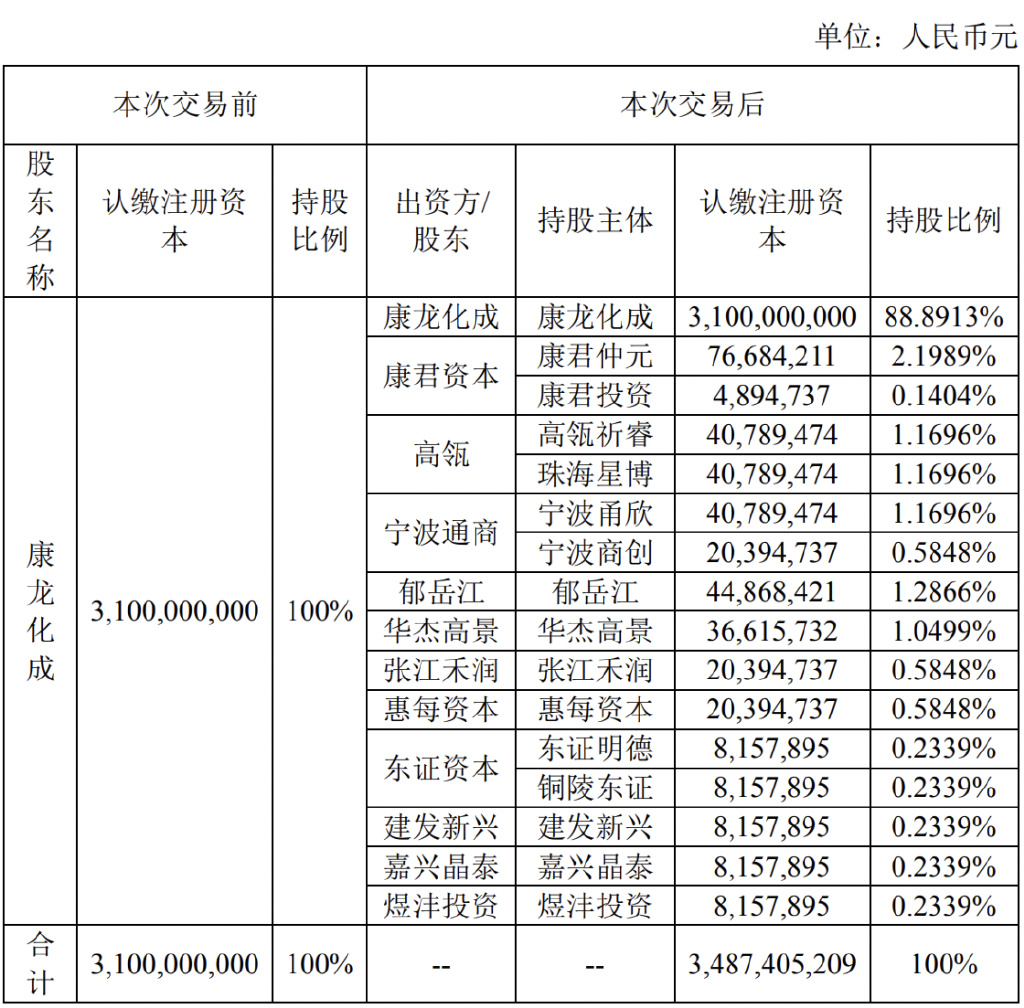 看看投资康龙生物的这一堆机构,又有大家熟悉的老朋友高瓴,而且高瓴认购比例同康龙化成的关联方康君资本一样多。
