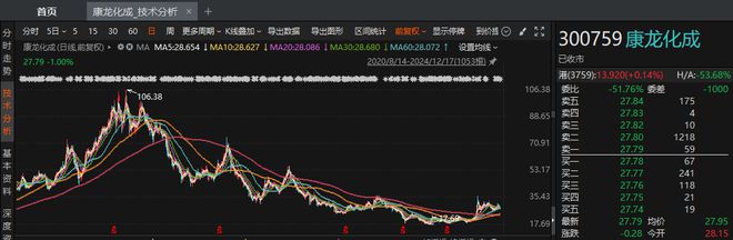 从估值来看,《财中社》发现,大跌之后公司依然不算便宜。康龙化成2023年营收和净利润分别为115.4亿元、16亿元,2024年三季度末净资产为133.9亿元。按照A股12月17日收盘市值计算,公司目前的PE(按2023年净利润计算)和PB(按2024年三季度末净资产计算)分别为31倍、3.7倍。