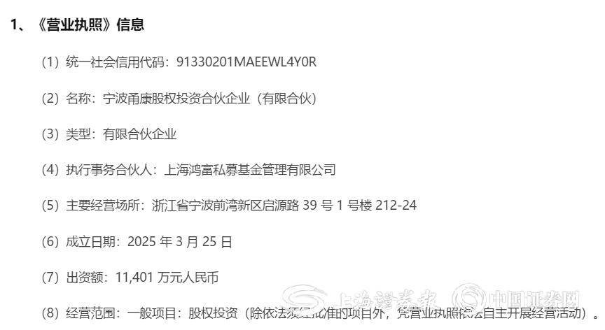 4月12日,康龙化成发布参与私募股权投资基金的进展公告称,公司近日收到基金管理人的通知,宁波甬康股权投资合伙企业(有限合伙)已完成工商登记备案手续,取得宁波市市场监督管理局下发的《营业执照》,并根据《证券投资基金法》和《私募投资基金监督管理暂行办法》等法律法规的要求在中国证券投资基金业协会完成基金的备案手续,并取得《私募投资基金备案证明》。具体情况如下: