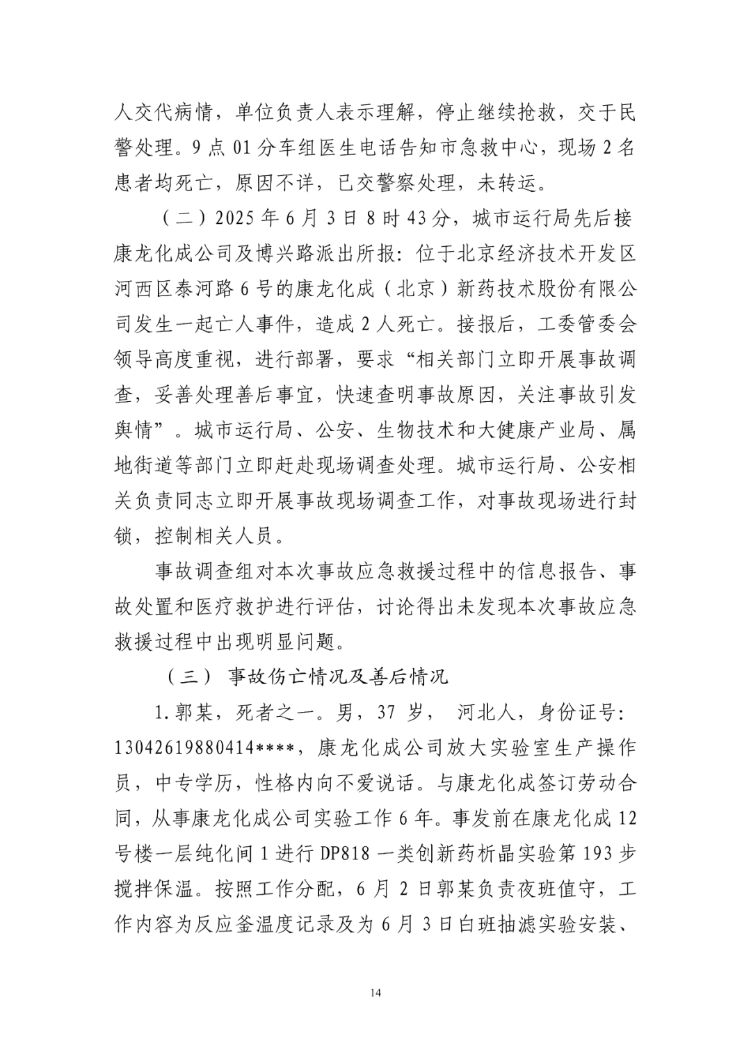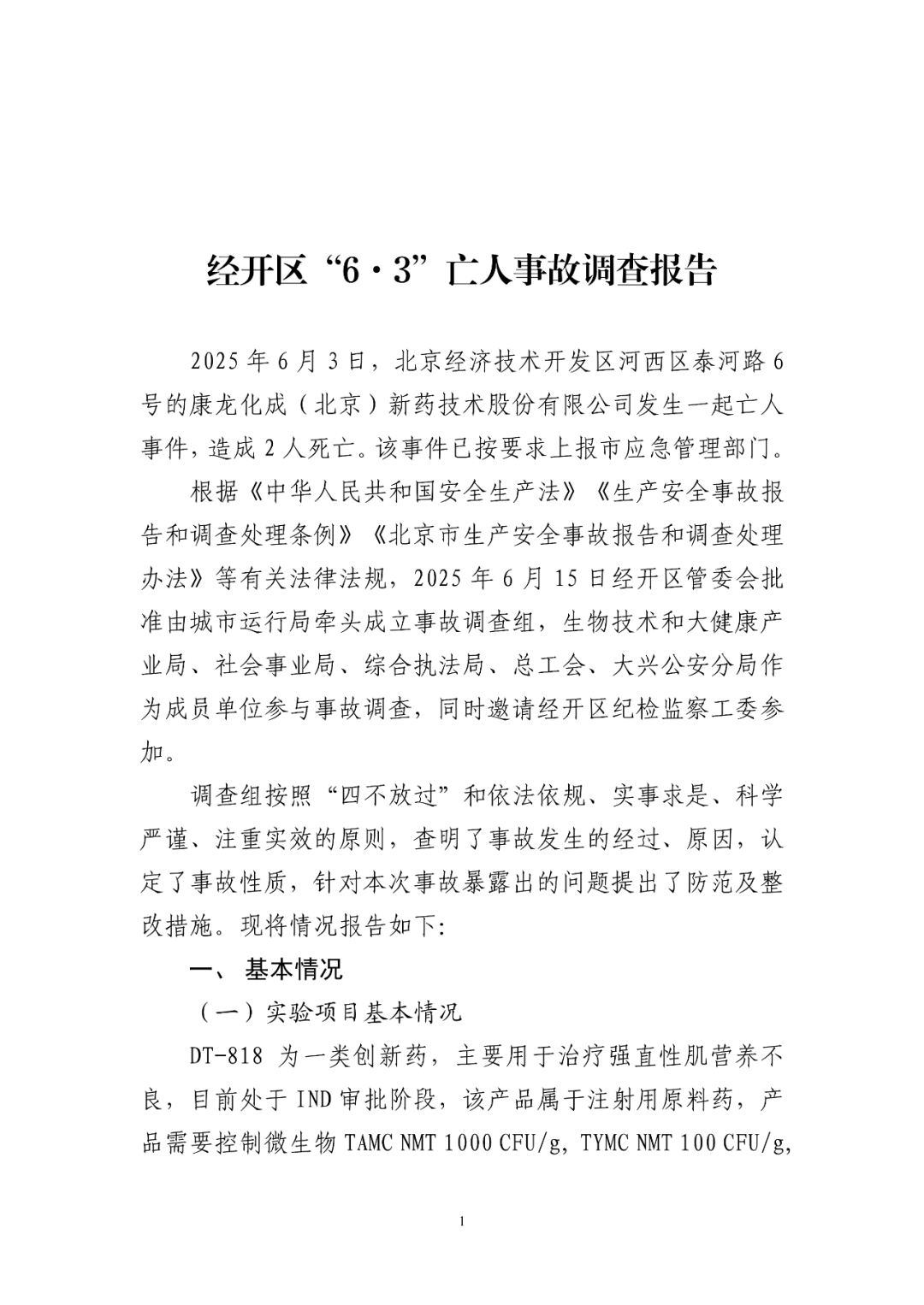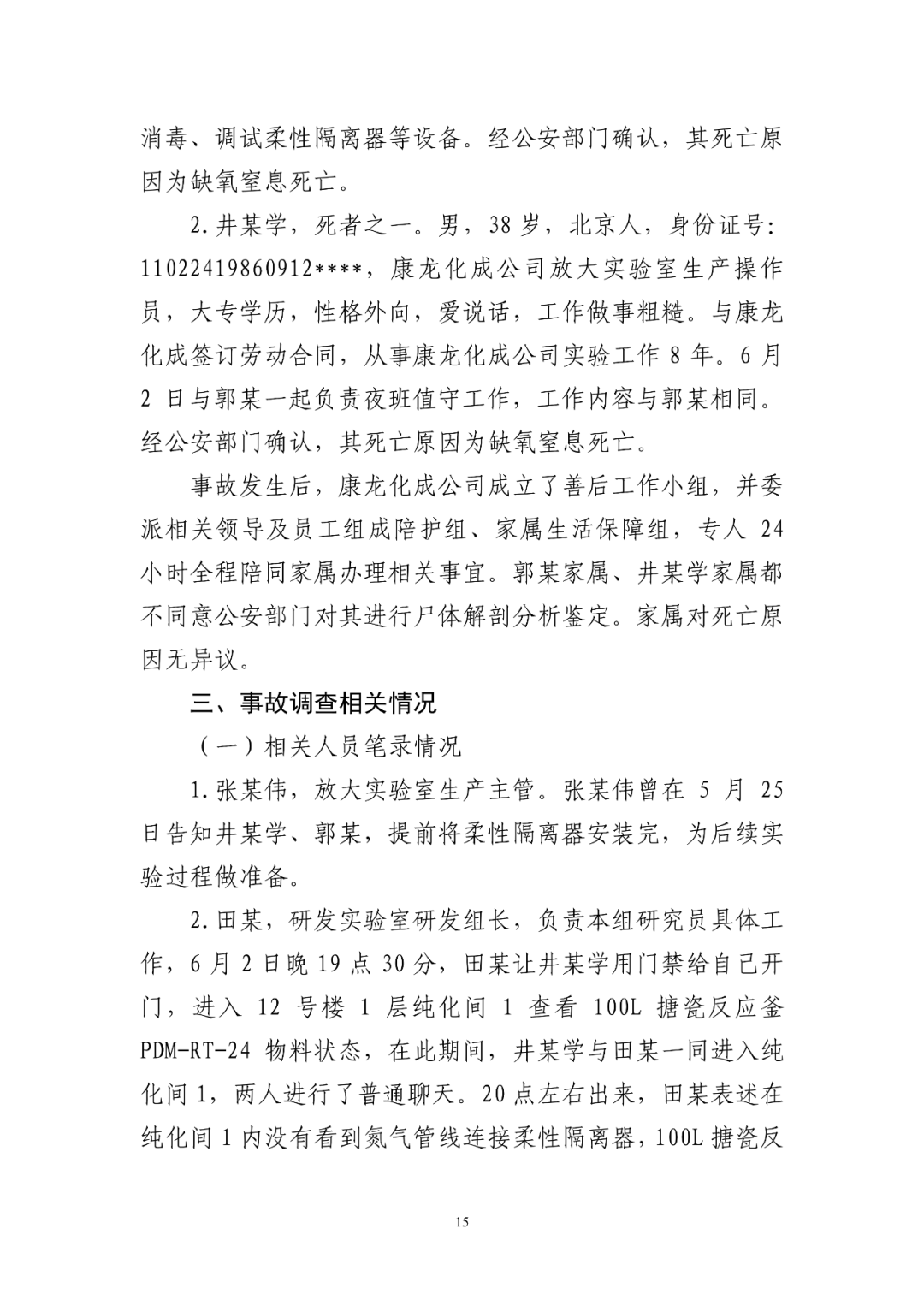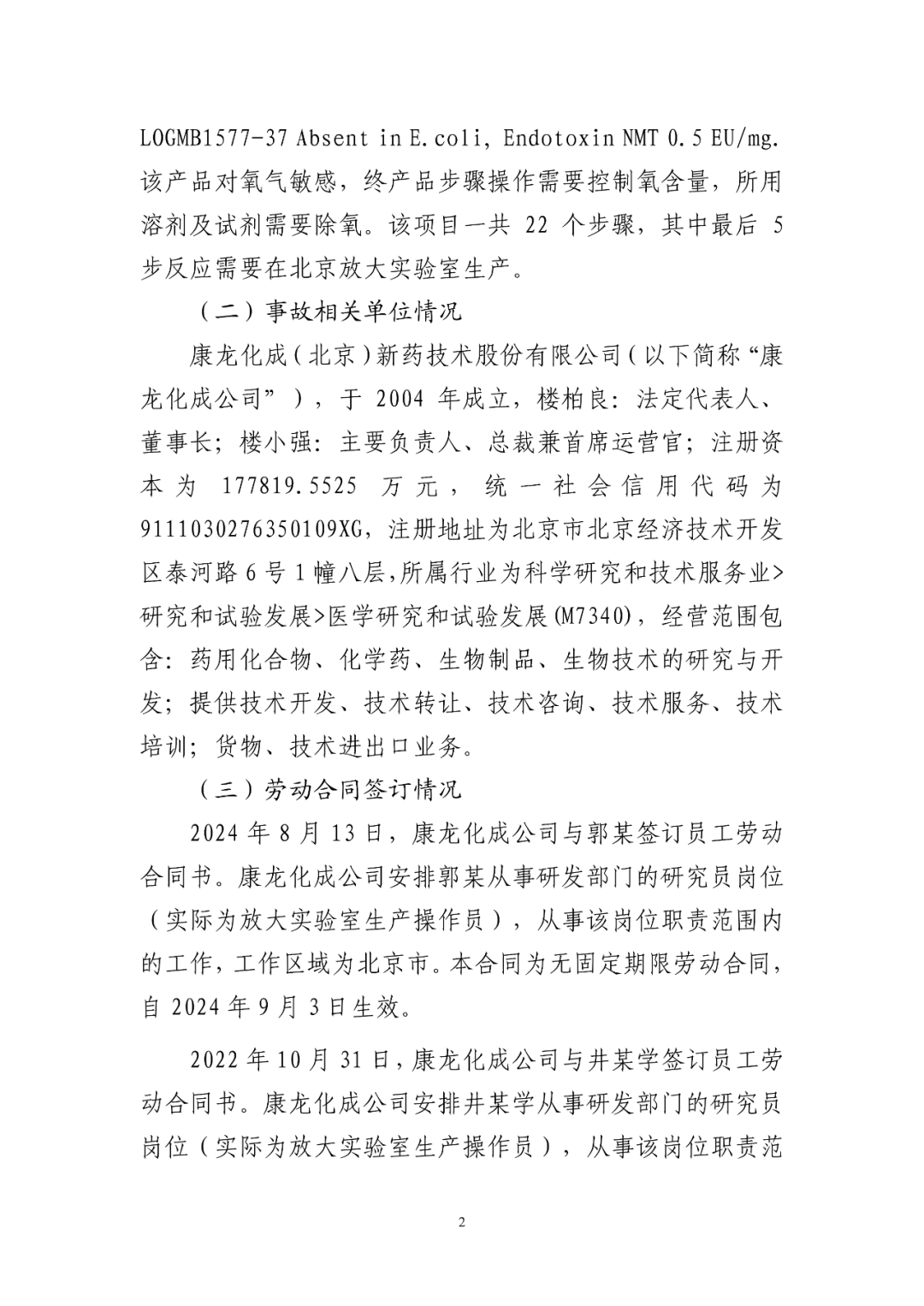 违反实验室操作规程致2死!康龙化成(北京)新药技术公司“6·3”事故调查报告