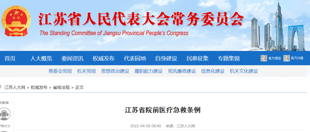 为了加强院前医疗急救体系建设,提高院前医疗急救服务水平,已有多地颁发相关条例,例如2022年4月6日,江苏省人大公布了通过了《江苏省院前医疗急救条例》,其中第十四条提到:重点单位、公共场所按照规定组建适应急救基本需求的专业性或者群众性救护志愿者队伍,配备必要的急救器械、设备和药品,在发生突发事件时协助急救中心进行紧急现场救护。机场、长途汽车客运站、火车站、轨道交通换乘车站、高速公路服务区、养老机构、学校、旅游景区等场所,应当配备自动体外除颤仪,并定期维护。鼓励其他重点单位、公共场所配备自动体外除颤仪。机关、企业事业单位、社会组织根据单位工作性质和特点,组织工作人员参加急救培训。