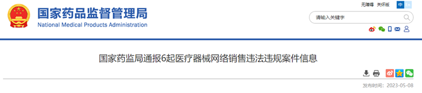 5月8日,国家药监局通报了6起医疗器械网络销售违法违规案件信息。