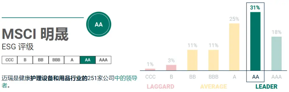 不过,诸如不正当竞争、知识产权纠纷等一系列争议,并未影响迈瑞医疗的评级表现。2024年,迈瑞医疗在新一轮MSCI(明晟)ESG评级中继续保持AA级,成为国内医疗器械行业在此评级体系下的领先者。