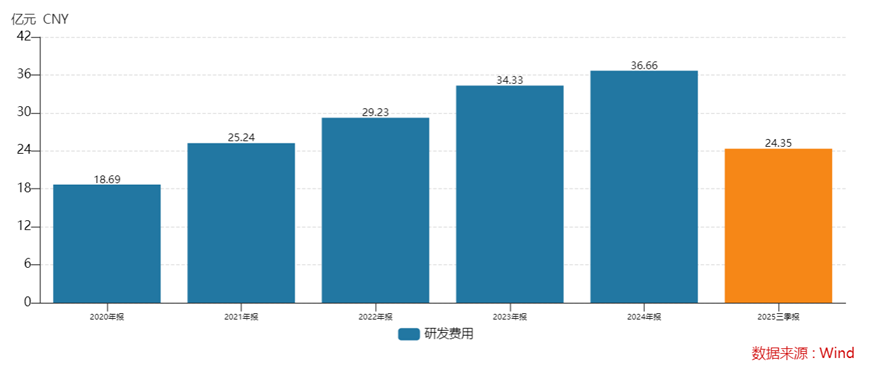 相比之下,研发投入则相对不足。2022年到2024年,迈瑞医疗研发费用分别仅为29.23亿元、34.33亿元、36.66亿元,到2025年三季度更是同比下滑6.07%。这种销售驱动型模式虽然在一定阶段内有效,但长期来看可能削弱公司的创新能力和核心技术优势。