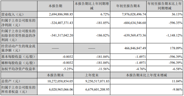 据公告,立华股份第三季度实现营收26.95亿元,同比增长6.72%;实现净亏损3.24亿元,业绩同比下降181.05%。