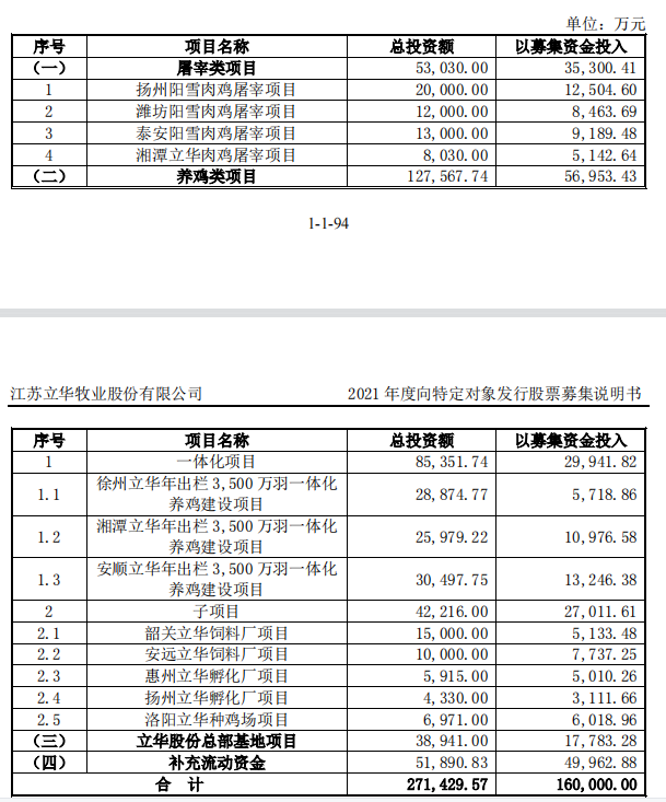 1月6日晚,立华股份(300761.SZ)发布公告称,拟向公司实际控制人之一的程立力定向募集资金总额不超过16亿元,用于屠宰类项目、养鸡类项目、总部基地项目及补充流动资金。