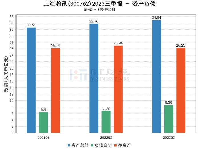 在资产负债方面,上海瀚讯2023年三季度的总资产为34.84亿元,相较上年度末的33.67亿元有所增长。负债合计为8.59亿元,较上年度末的6.76亿元有所上升。净资产为26.25亿元,相较上年度末的26.9亿元有所下降。资产负债率为24.66%,较上年度末的20.09%有所上升。