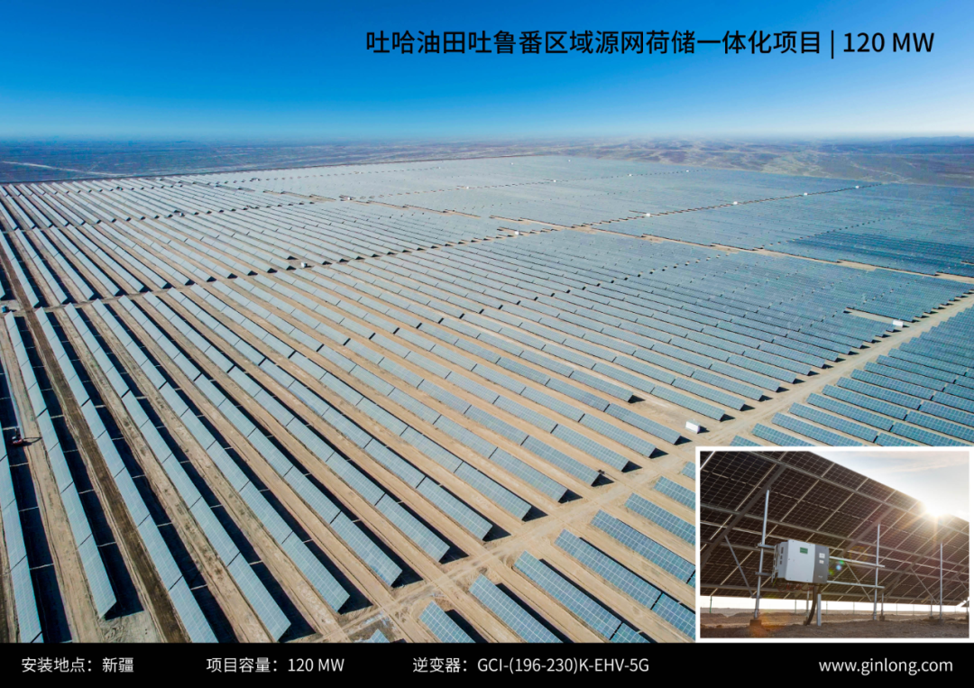 这里是位于吐鲁番区域的120MW源网荷储一体化项目,由中国石油开发运营,锦浪科技提供智能光伏解决方案。是新疆首批源网荷储示范项目,也是中国石油首个获批建设源网荷储一体化项目。