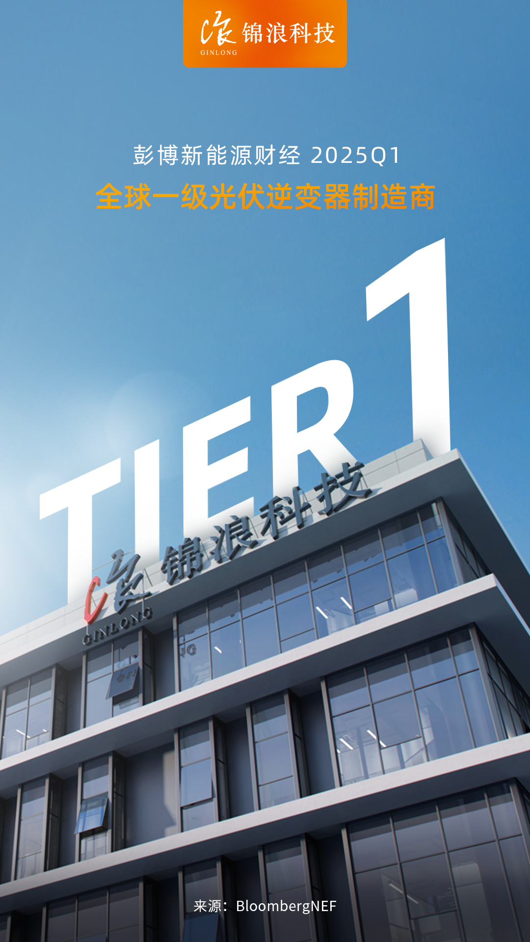 近日,彭博新能源财经(Bloomberg NEF)发布了2025年第一季度全球一级光伏逆变器制造商名单,锦浪科技再度荣登Tier 1榜单。