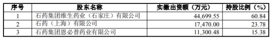 石药(上海)有限公司由石药集团恩必普药业有限公司和石药集团欧意药业有限公司100%持股。