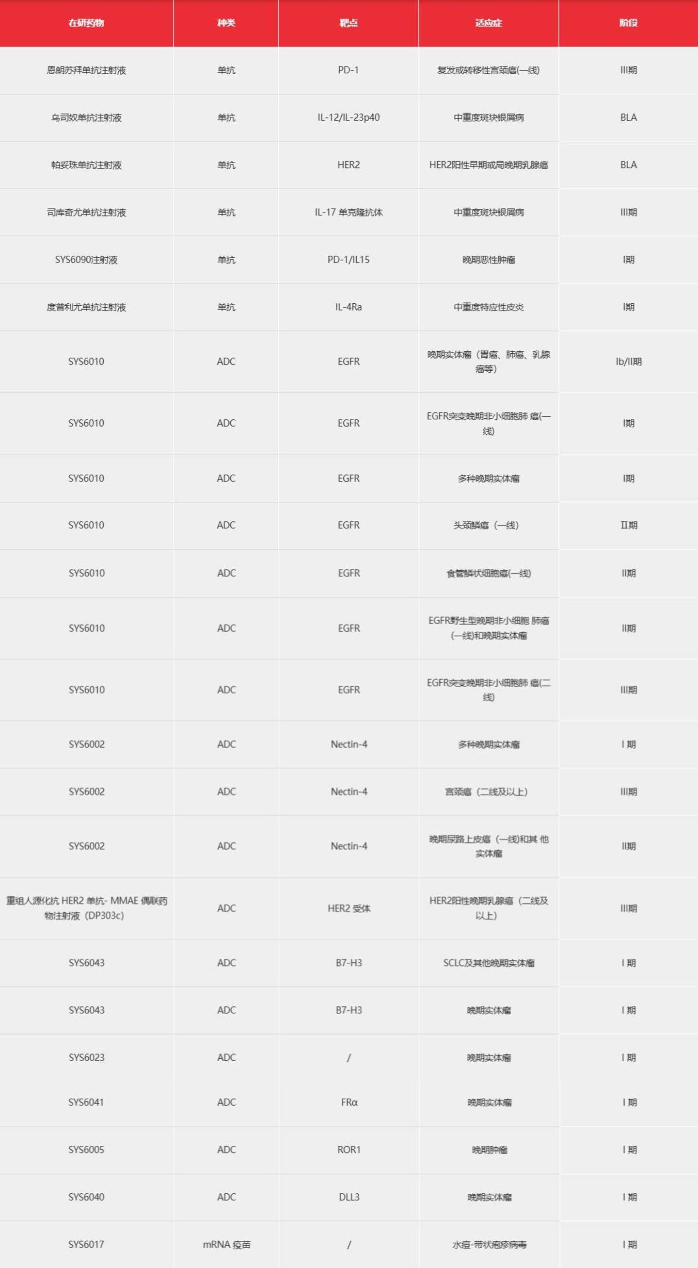 这笔巨额投入主要用于公司抗体药物、ADC(抗体偶联药物)、mRNA疫苗三大前沿平台的管线推进,包括注射用奥马珠单抗(恩益坦?)新适应症获批上市,SYS6010(EGFR突变晚期非小细胞肺癌二线)、SYS6002(宫颈癌二线及以上)两款ADC产品进入III期临床,帕妥珠单抗注射液、乌司奴单抗注射液递交BLA(生物制品许可申请),9款产品获得中国临床试验批准、4款斩获美国FDA临床批件。