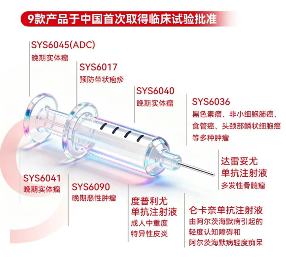 临床方面,新诺威2025年共有9款产品在中国首次获得临床试验批准,4款产品取得美国FDA临床试验批准。其中,SYS6010(EGFR突变晚期非小细胞肺癌二线)、SYS6002(宫颈癌二线及以上)2款ADC产品进入III期临床阶段。多项重要临床数据陆续发表,全球学术影响力持续提升。