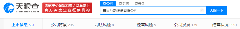 记者注意到,截至2021年9月10日,每日互动收盘价为14.3元。另从“天眼查APP”了解到,每日互动目前司法风险8条,经营风险5条。接下来,对于公司的相关事件进展我们也会持续关注。