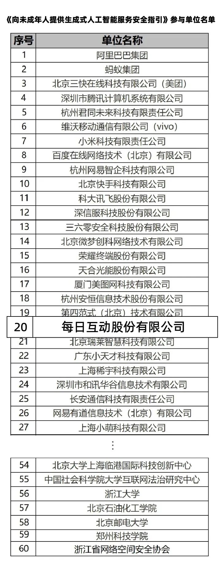 6月10日,每日互动与阿里巴巴、腾讯、小米等60家单位共同编写的《向未成年人提供生成式人工智能服务安全指引》(以下简称《指引》),在2025年中国网络文明大会人工智能分论坛上正式发布。