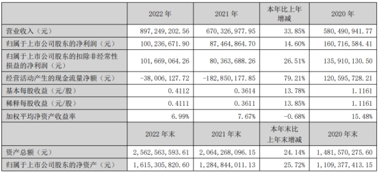 震安科技2022年营业收入为8.97亿元,同比增长33.85%;归属于上市公司股东的净利润为1.00亿元,同比增长14.60%;归属于上市公司股东的扣除非经常性损益的净利润为1.02亿元,同比增长26.51%;经营活动产生的现金流量净额为-3800.61万元,上年同期为-1.83亿元。