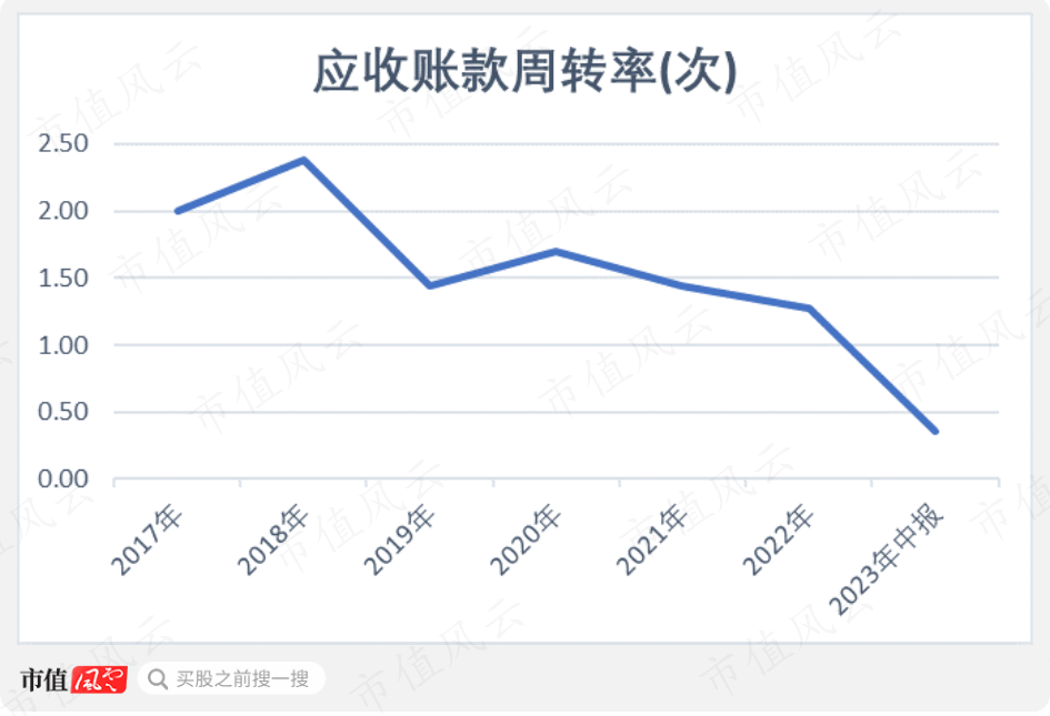从其周转率来看,近几年也是在不断下降,2022年降至1.27次,销售账款不能及时收回。