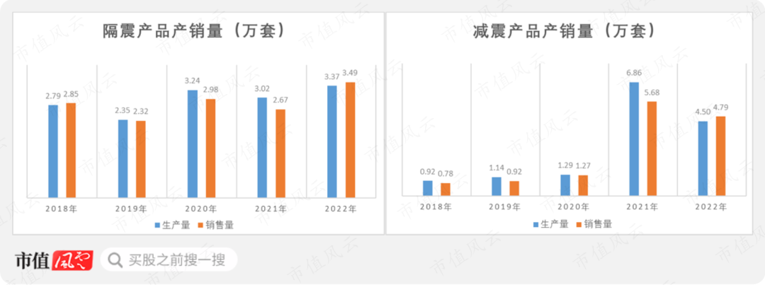 2022年末,IPO项目投产,又新增减隔震产品产能6.2万套/年。