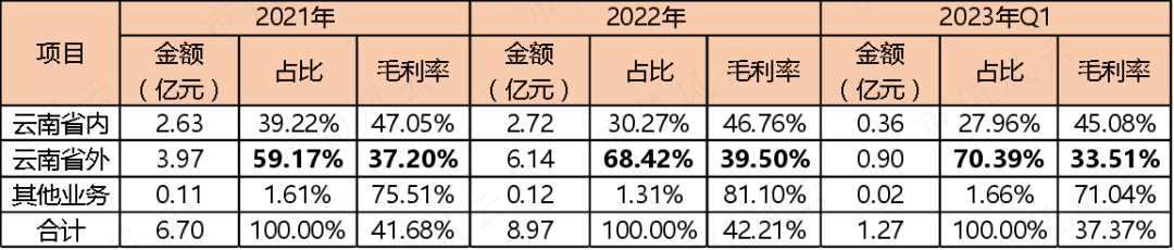 随着省外营收占比的不断增长,整体毛利率持续走低。