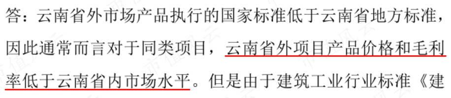 一方面,由于地方标准的不同,部分同类规格的产品价格会低于云南省内。