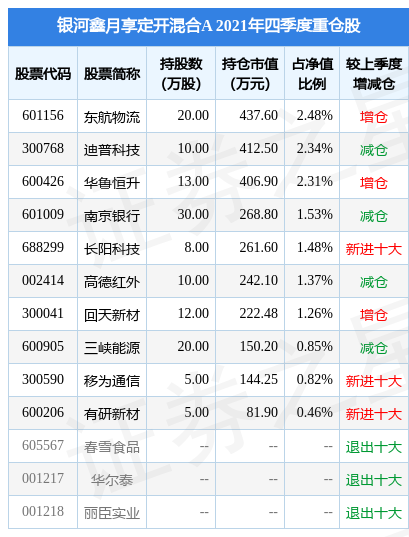 银河鑫月享定开混合A的前十大重仓股如下: