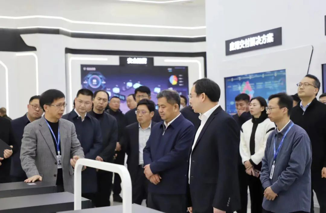 在迪普科技解决方案体验中心,迪普科技CEO邹禧典为陈强领导一行介绍了迪普科技网络安全产品在数字化转型、数字经济高速发展的今天所发挥的重要作用,迪普科技产品在智能智造、关键信息基础设施、数字政务等领域取得的成绩,并介绍了迪普科技通过自研创新,带动上下游产业链协同发展,助力数字经济高质量发展的发展心得。