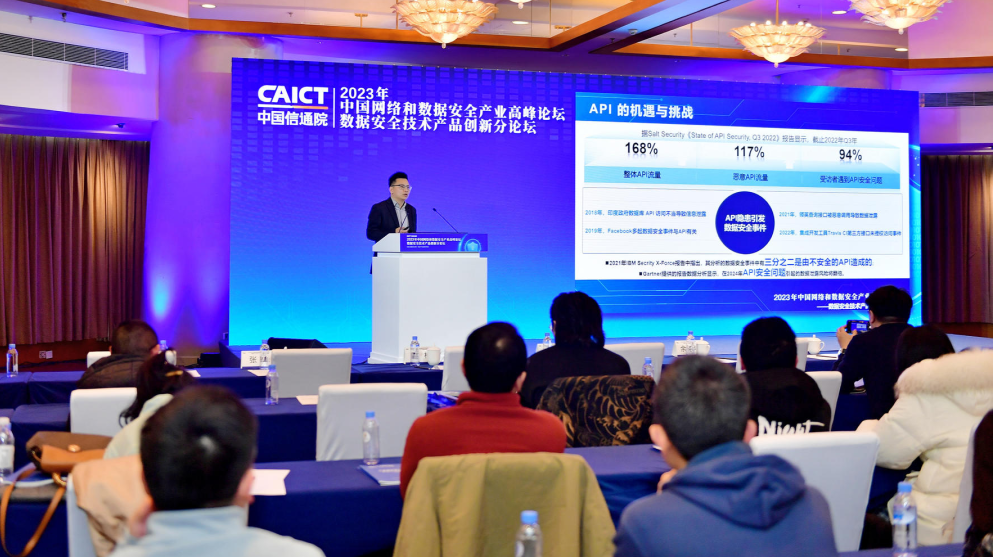 在中国网络和数据安全产业高峰论坛中,迪普科技股份有限公司副总裁李瑞,以基于AI的数据指纹识别及API接口安全监测为主题,进行了分享。