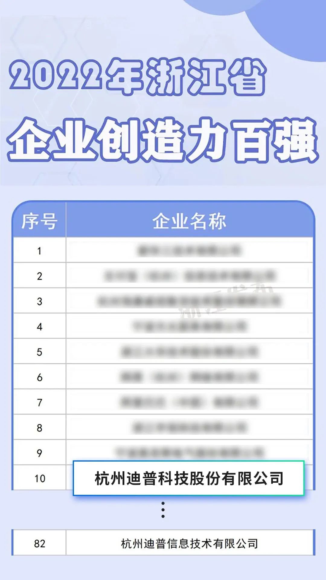 杭州迪普科技股份有限公司及子公司杭州迪普信息技术有限公司双双入选,分列浙江省企业创新能力百强第10名、第82名!