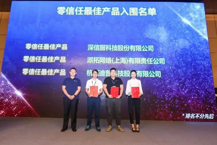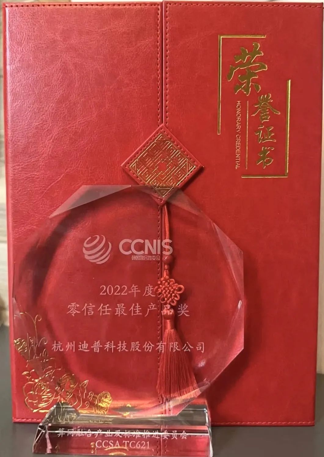本次论坛正式公布《2022零信任优秀案例》,迪普科技作为首批首家通过了“Zero Trust Ready”SDP设备基准能力测试的企业,充分发挥自身安全能力优势,丰富零信任架构落地方案,连续第二年收获“2022年度零信任最佳产品奖”,并出席本次峰会,领取奖杯及荣誉证书。