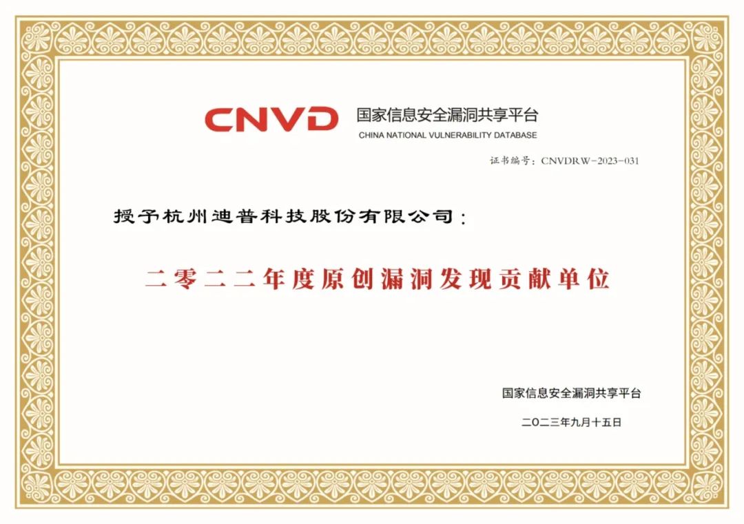 迪普科技安全研究院依托于安全研发团队强大的技术实力,一直致力于漏洞挖掘、网络安全威胁检测、威胁情报分析、应急响应等研究工作。迪普科技作为CNVD技术组支撑单位,连续多年积极向CNVD国家信息安全漏洞共享平台进行漏洞和威胁情报报送,连续两年被评选为年度原创漏洞发现贡献单位。