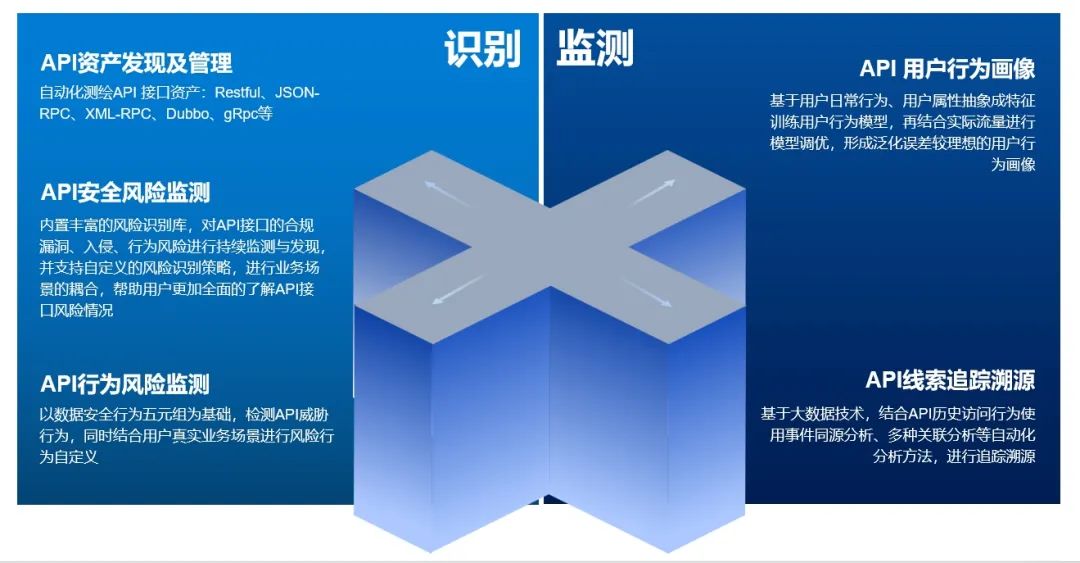 结合先进的AI模型分析技术,从接口威胁维度、接口行为维度、接口弱点维度全面监测API接口风险,并支持动态调整接口的风险识别模型,帮助用户全面掌握现网中的接口风险态势。