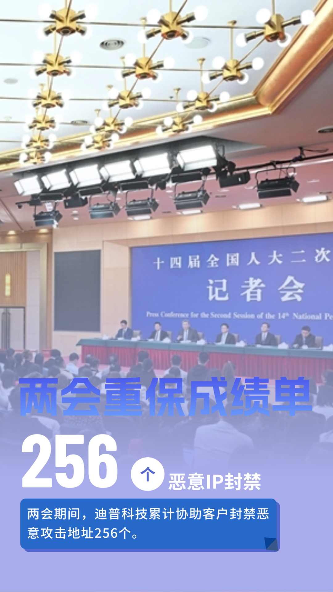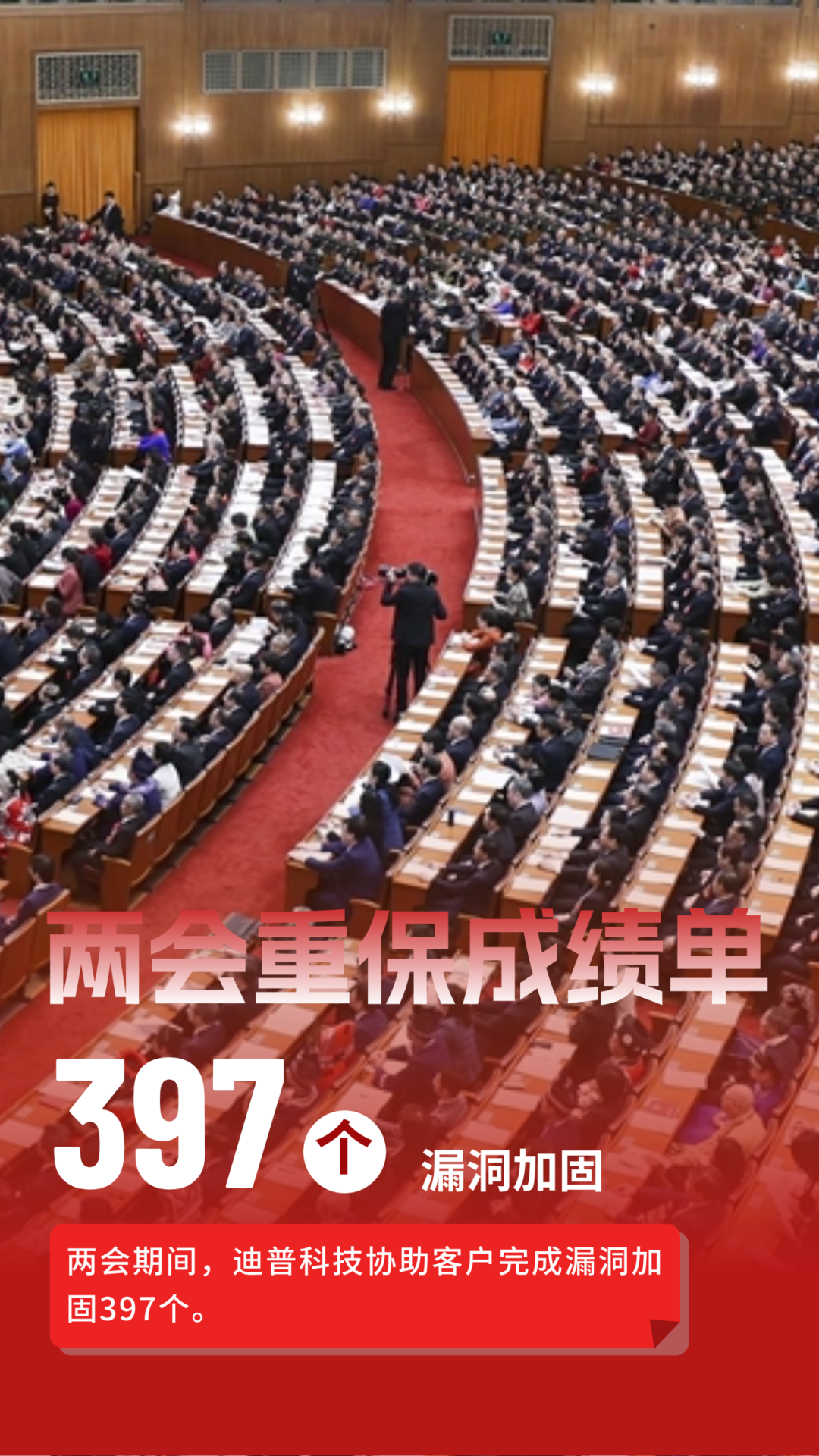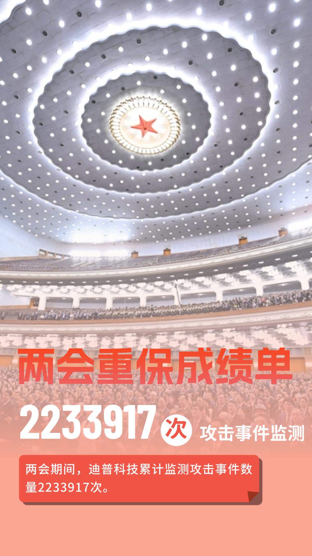 3月11日,全国两会在京圆满闭幕。迪普科技调动全国各区域的安全服务团队,在两会期间全力以赴开展网络安全重点保障工作,确保两会顺利召开、圆满闭幕。