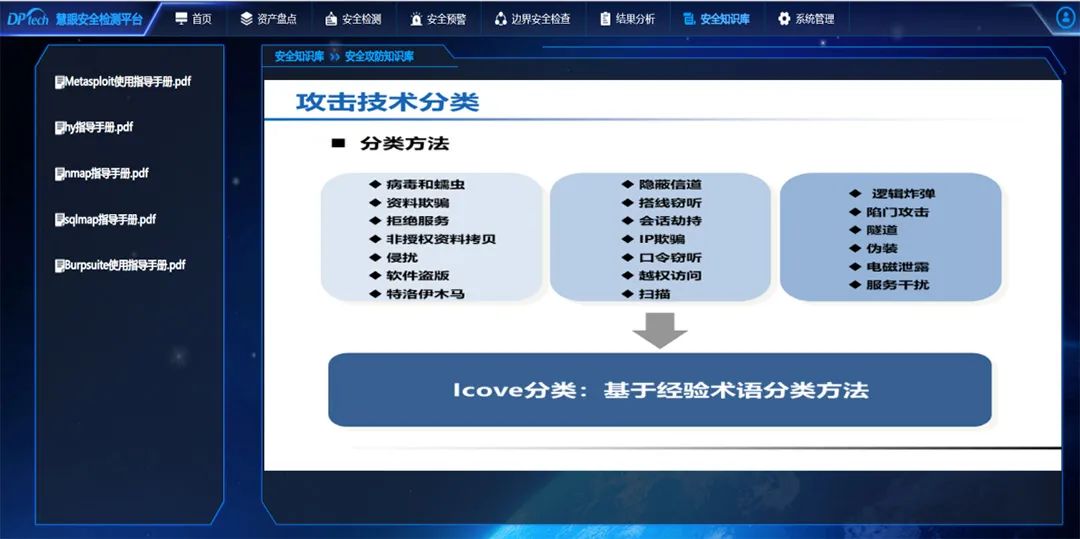 内置安全攻防知识库,对攻防演练过程中经常使用的开源工具进行了汇总,同时配置相应的指导手册,可在漏洞验证兵器库中下载使用。