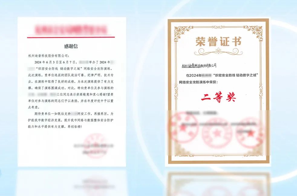 信中还表彰了迪普科技在此次网络安全攻防演练工作中荣获二等奖的突出表现,并鼓励迪普科技再接再厉、再创佳绩。