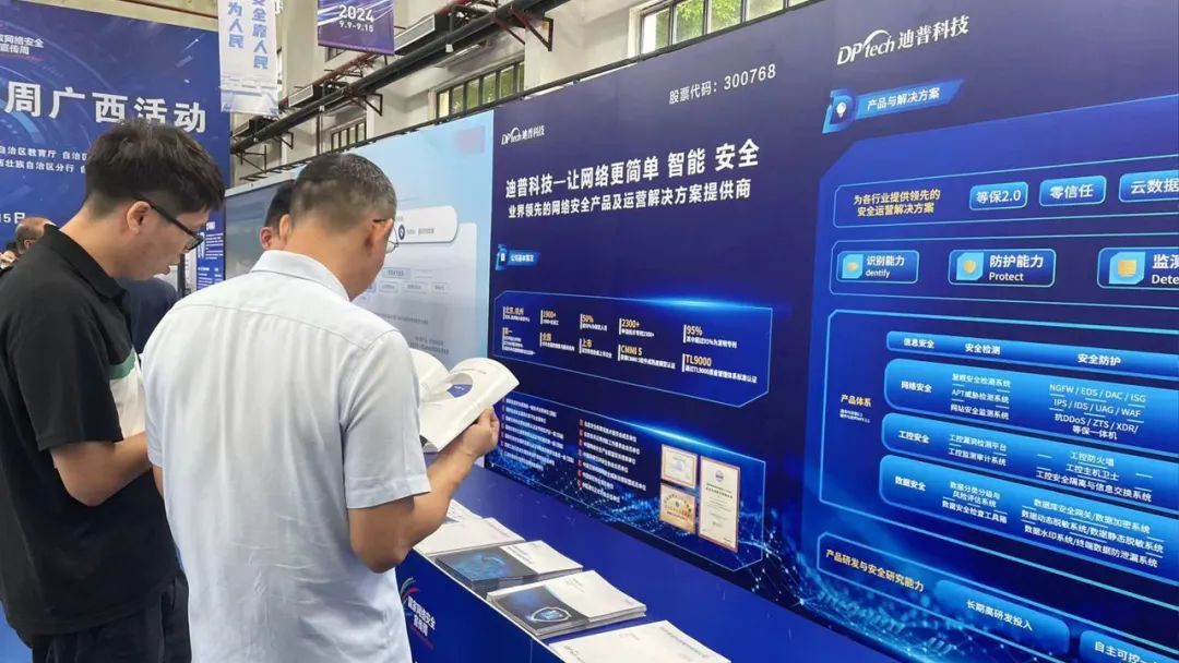 9月9日,2024年国家网络安全宣传周南宁活动启动,活动紧扣“网络安全为人民,网络安全靠人民”的主题,向广大群众普及网络安全知识,提升人民群众的网络安全意识和防护能力,进一步筑牢网络安全屏障。迪普科技受邀参加此次活动,并在现场设置展位,通过生动有趣的网络安全宣传片、宣传册等内容形式向群众分享日常个人信息安全保护手段,同时还集中展示了包括信创产品、AI大模型应用等迪普科技最新网络安全领域创新成果。